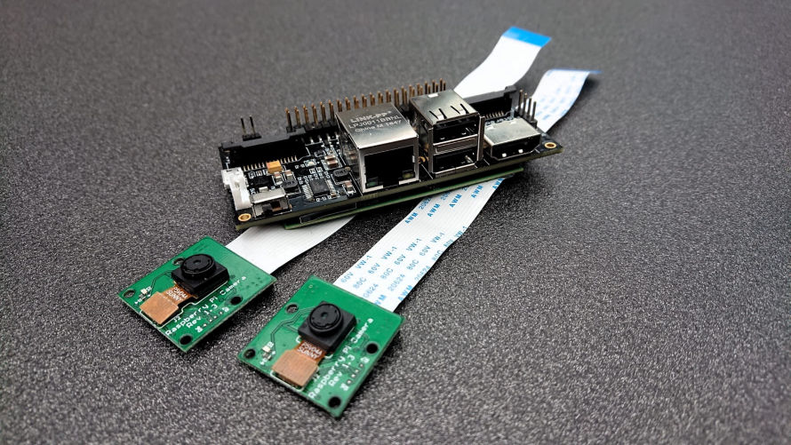To be able to create depth maps in real-time, the project needed a stereoscopic camera. A relatively cheap and practical solution was to use a StereoPi device. This is a modified Raspberry Pi (a small GNU/Linux computer) that includes two PiCamera sockets and as such allows its use for stereo imaging. The StereoPi came without any useful mounting support for this project's purposes, therefore a housing was designed using a CAD software which was then 3D printed (see Figure 8 for the assembled PyDepth project camera).